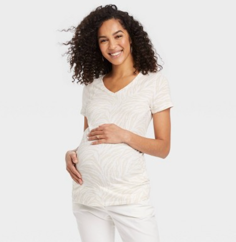Camiseta de maternidad de maga corta cuello en v rosa