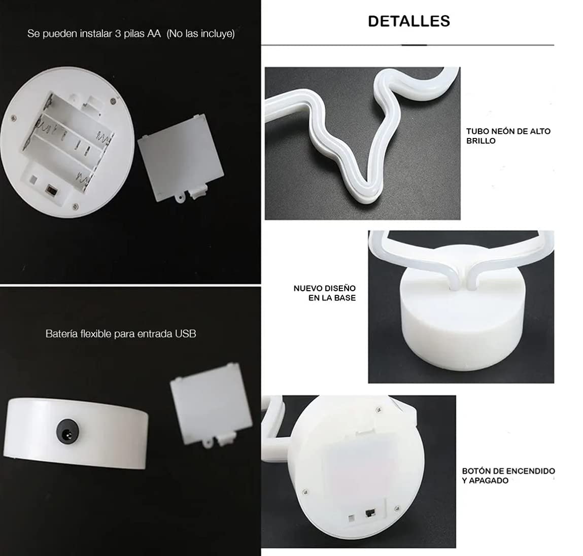 Dentro de la caja encontrarás: 1x Base de lampara. 1x Cable USB. 1x Lámpara Led con figura seleccionada.