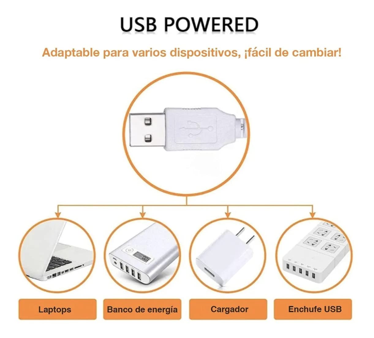 Cable USB incluido con el cual podemos tener nuestra lámpara encendida todo el tiempo sin gastar en baterías.