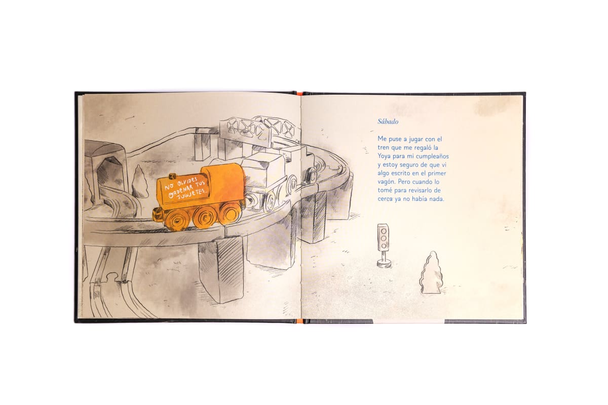 Mediante textos breves y hermosos dibujos, un niño expresa la tristeza que lo embarga, asociando sus emociones con lo que ve (ausencia de color) y lo que siente en su mente y en su cuerpo (desconcierto y frío). Su mundo en blanco y negro lentamente va recobrando las tonalidades en la medida en que aparecen los mensajes de “la Yoya”, su abuela recientemente fallecida.