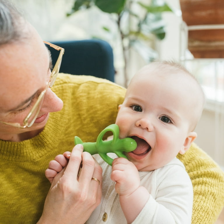 Un masaje en las encías. El cepillo de dientes Peapod Teether + Training cuenta con múltiples texturas y es ideal para promover la exploración de la lengua.