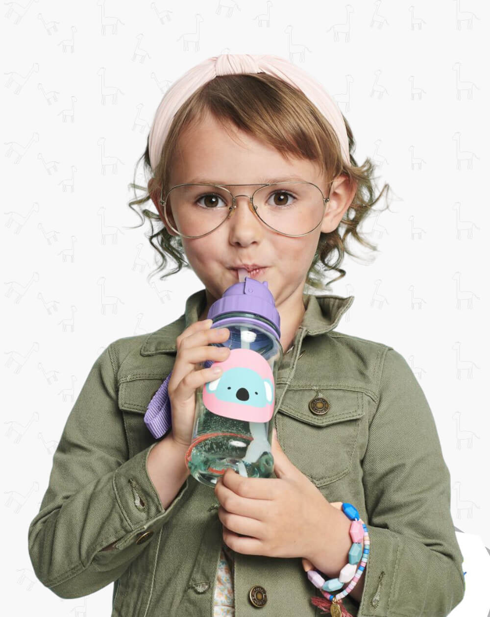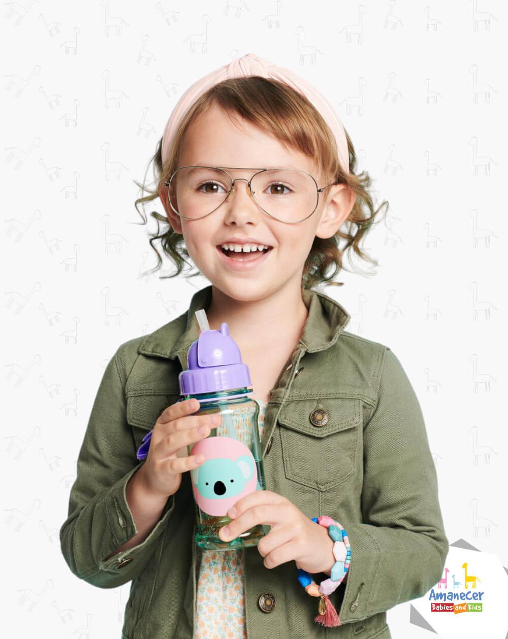 • La pajilla se voltea hacia abajo para poder mantener la botella cerrada y limpia.