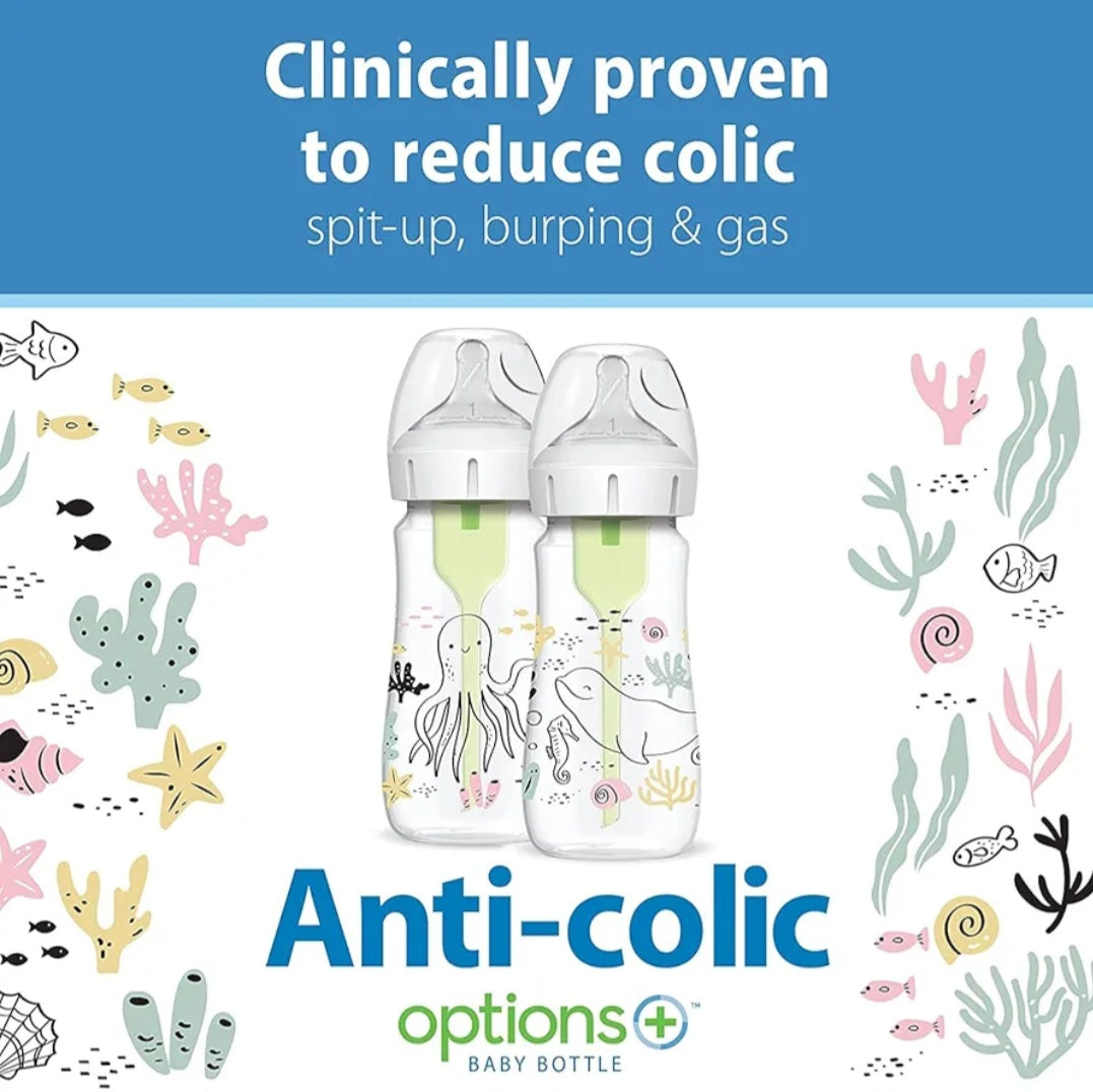 Biberones Anticólicos Dr. Brown’s – Ocean Friends, Pack de 2 (9 oz / 270 ml)