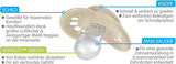 - Fácil de usar: en su caja de esterilización y transporte, el chupete se puede esterilizar fácilmente y ahorrar tiempo en el microondas sin necesidad de equipo adicional. Esto ahorra un 77% de CO2 y energía y agua