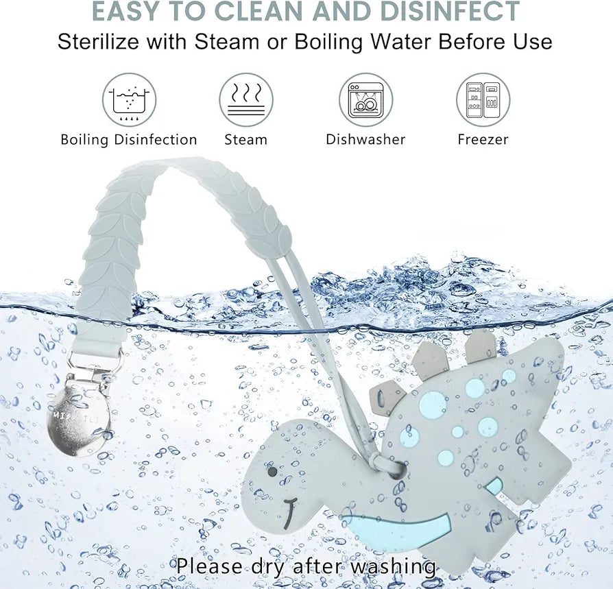 • Fácil de limpiar: la limpieza es muy fácil. Simplemente limpia con agua jabonosa o limpia con un paño húmedo, o métela en el lavavajillas o agua hirviendo para una limpieza más profunda. ¡Tu bebé volverá a su mordedor favorito en poco tiempo!