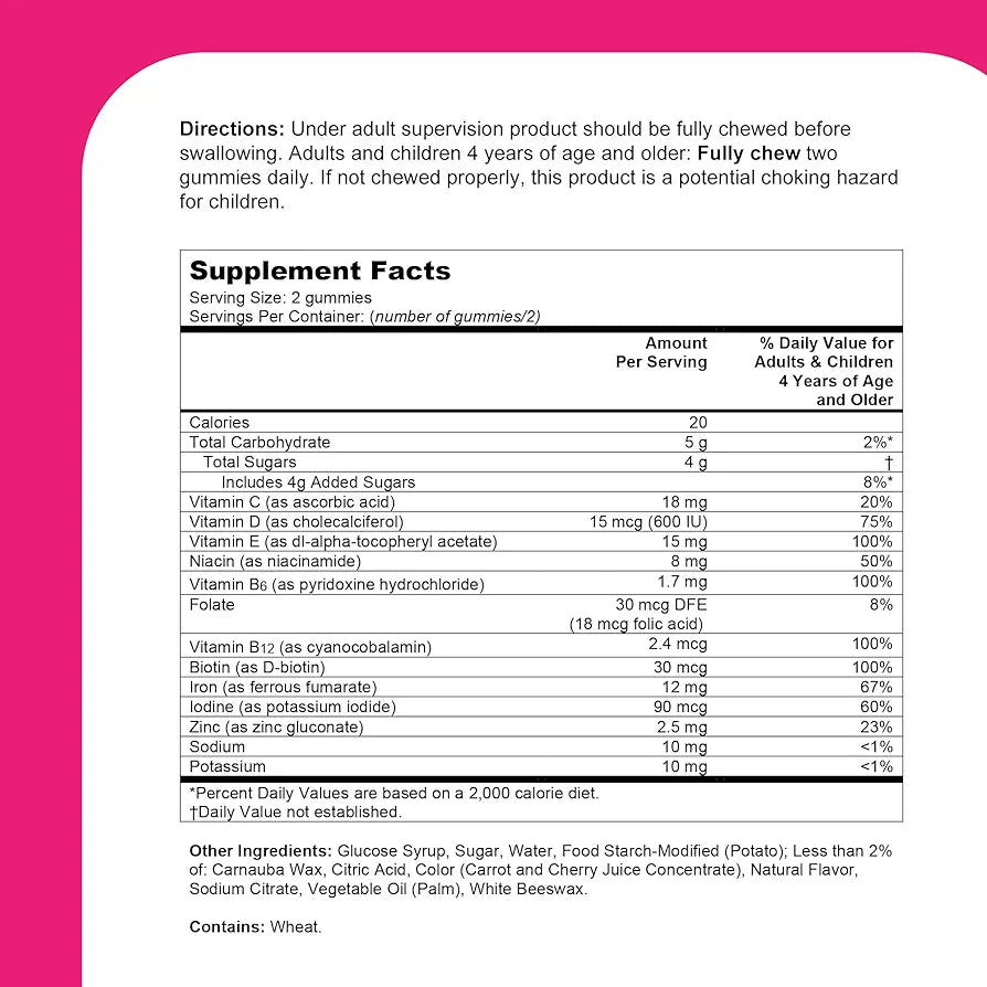 One A Day Las vitaminas gomosas para niños ayudan a llenar los vacíos nutricionales con 10 nutrientes esenciales, incluyendo hierro y vitamina D para apoyar a los niños en crecimiento*