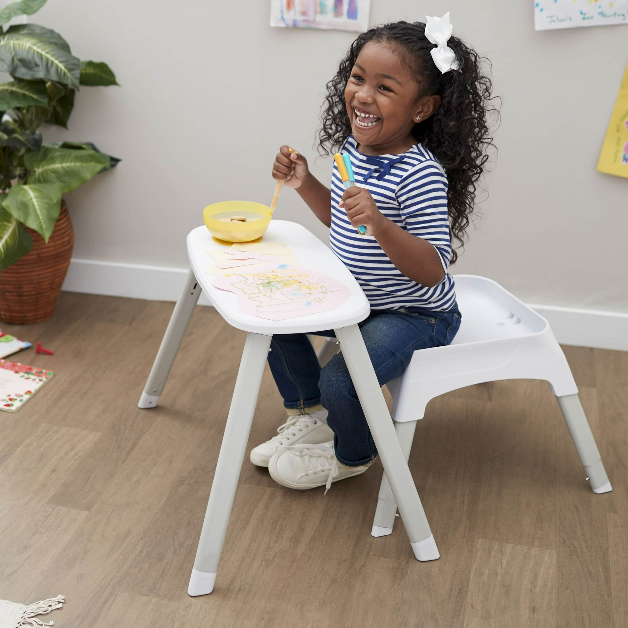 3 modos de niño grande: taburete bajo, mesa y taburete bajo, y taburete alto (3-5 años; hasta 50 libras.)