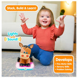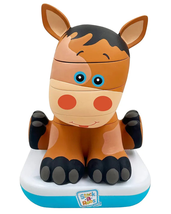 Giro moderno en una torre de apilamiento clásica: nuestro adorable caballo de bebé Stack-a-Roo es un giro único en la clásica torre de apilamiento infantil. Una vez que las manos pequeñas apilan correctamente los bloques gruesos, se forma un animal de granja y sonará una trompeta para celebrar.